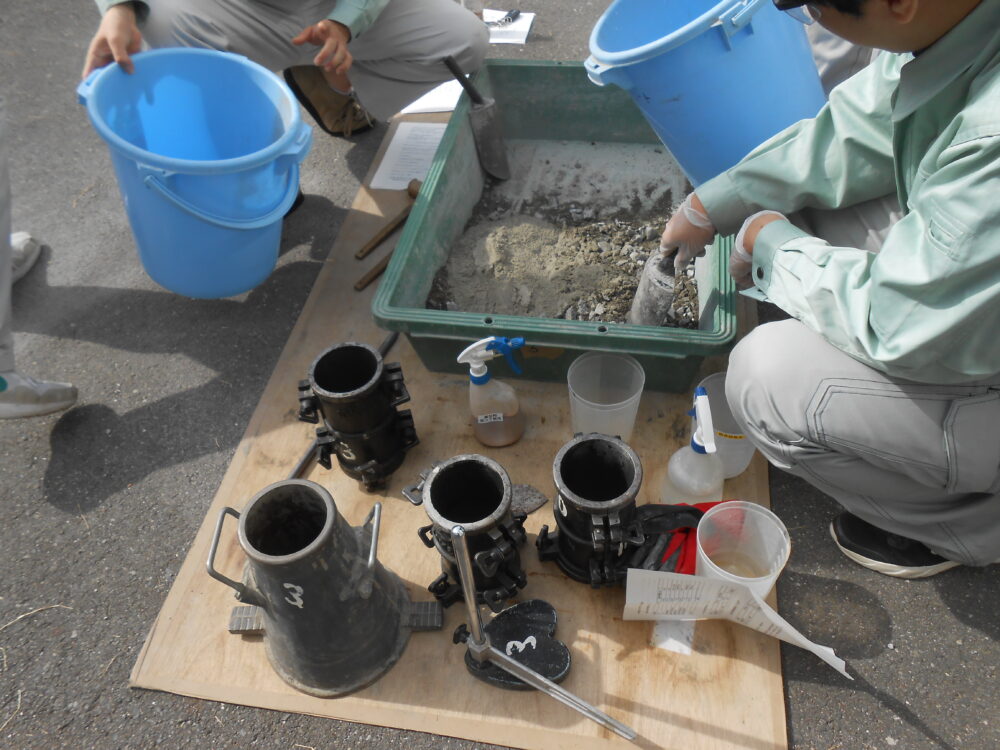 10月25日、5C「総合プロジェクトⅢ」科目がありました。後期は、構造系および環境系の科目を並行しておこないます。構造系では、先週、卒研中間発表の後に製造した再生骨材を使ってコンクリートをつくりました。5C卒業研究中間発表がありました | 群馬工業高等専門学校 環境都市工学科ホームページ (gunma-ct.ac.jp)硬化したら普通骨材コンクリートと物性を比較します。環境系では、浚渫工事で出される廃棄物を有効利用した実習です。学内にある西湖から底泥を採取し、落ち葉等と混合して腐葉土をつくります。人工栽培で生育させた小松菜を、この土に移植して生育を観察します。試食できるまで育って欲しいです。