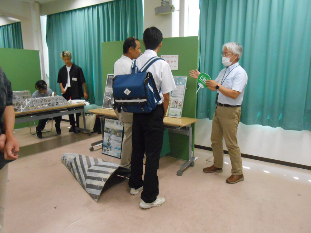 8月5日、令和5年第1回群馬高専学校見学会「C科展」が開催されました。参加されました中学生および保護者の皆様、如何でしたでしょうか?これからアンケートを調べ、次回に活用します。「C科展」は、C科の魅力を3つの体験型ゾーンで感じてもらうことにしています。「環境ゾーン」では、汚れた水がどのようにしてきれいになるかを感じてもらいます。「防災ゾーン」では、地震の揺れを見たり・洪水災害・土石流災害について感じてもらいます。「都市ゾーン」では、IoT技術・ICT技術について感じてもらいます。さらに、構造デザイン研究会・コンクリートカヌーの展示、5C学生によるC科紹介・進路相談もありました。猛暑の中、「C科展」に来場されました中学生および保護者の皆様、ありがとうございました。